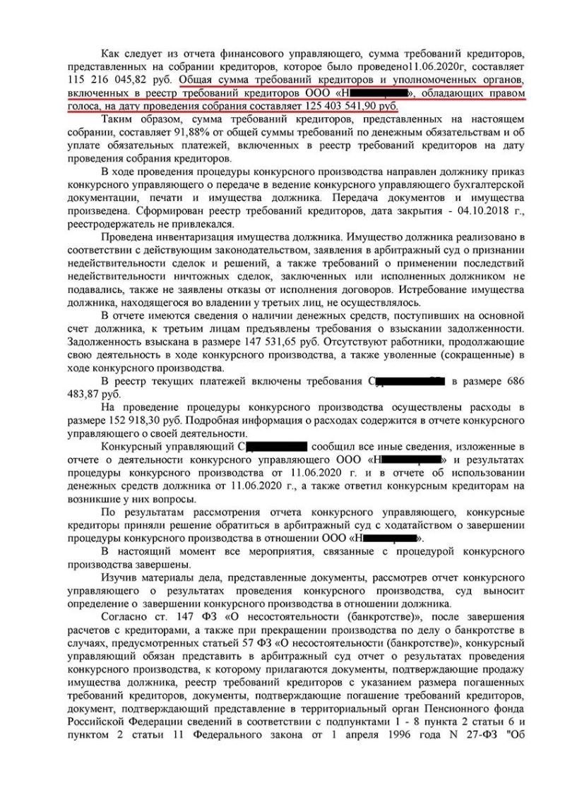 Обратился в арбитражный суд с заявлением о банкротстве ООО «Н...», выполнил юридическое сопровождение процедур банкротства.