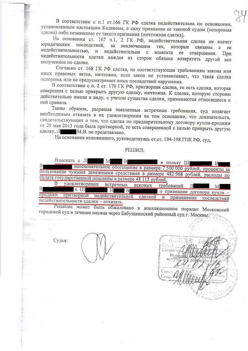 • Отменена недействительная сделка