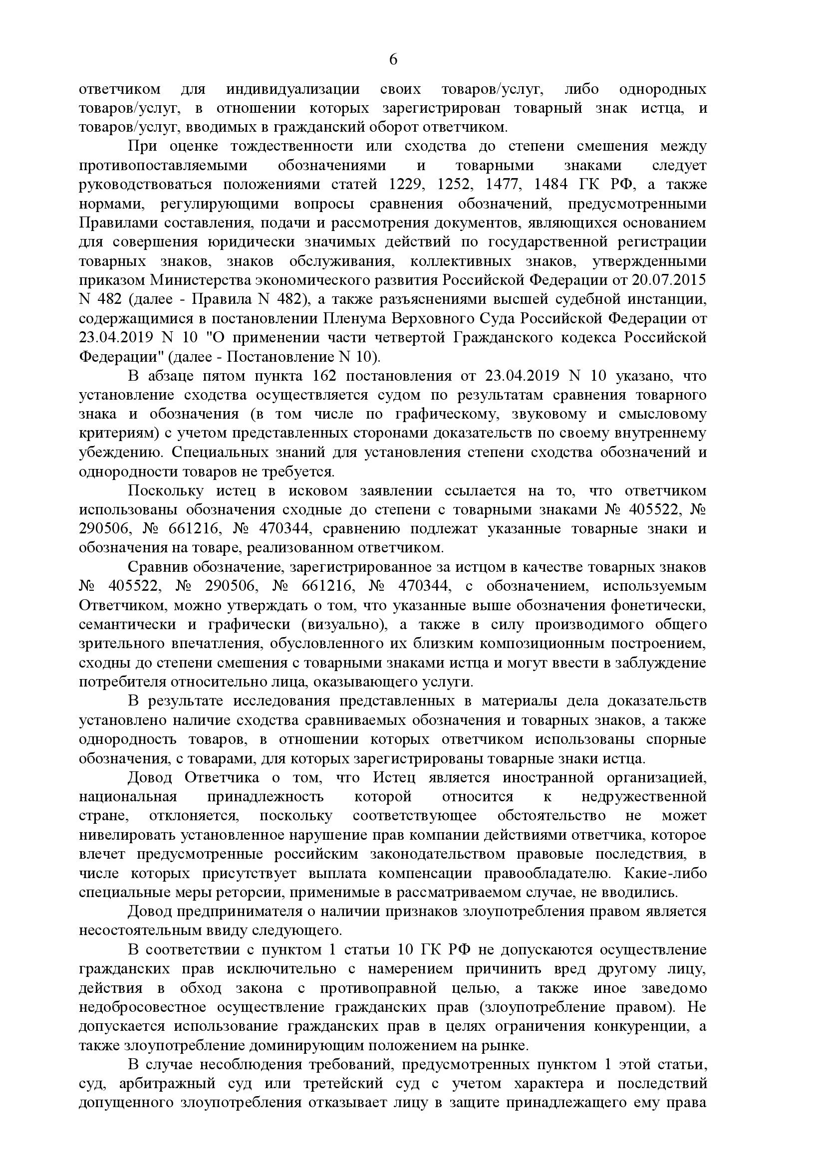 Защита настаивала на том, что три из четырёх товарных знаков фактически являются серией знаков одного правообладателя с общим доминирующим элементом, поэтому их одновременное использование на одном товаре должно рассматриваться как одно нарушение. Также ответчик указывал на несоразмерность заявленной компенсации, просил снизить её ниже минимального размера. Однако суд не усмотрел оснований для снижения ниже 10 000 руб., но применил принцип разумности и справедливости.