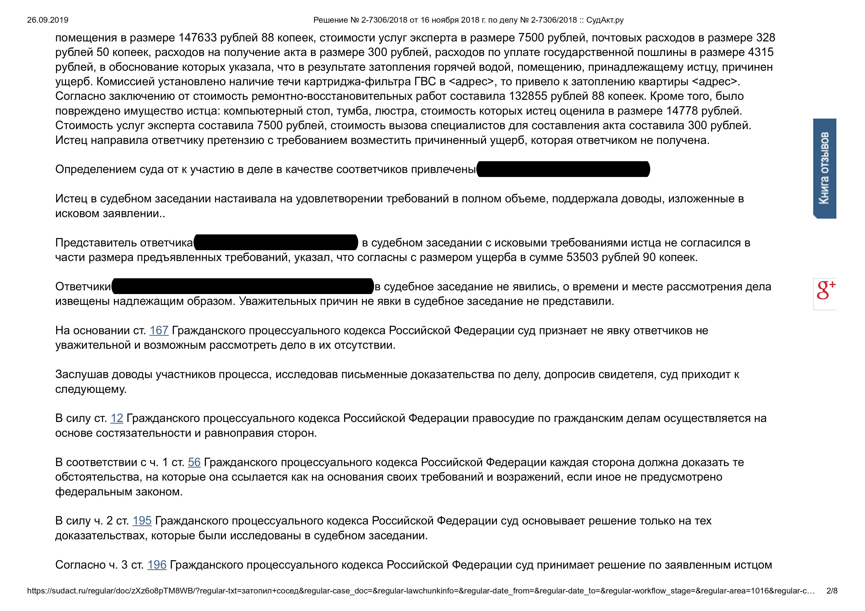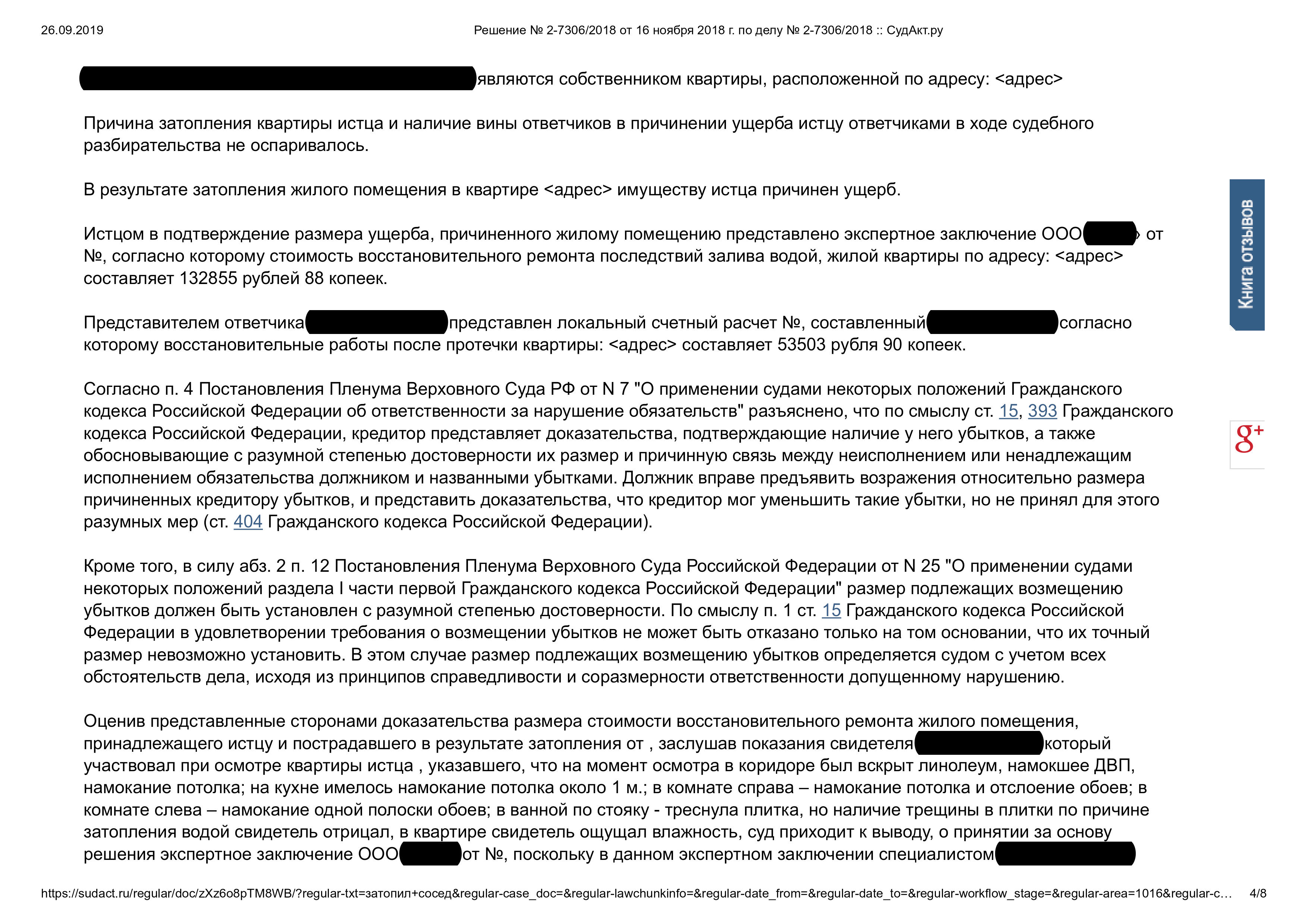 Возмещение ущерба после залива квартиры